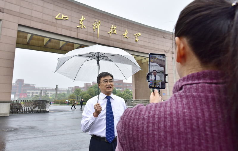 当日下午2时,虽然下起了细密的小雨,但是视频直播依然如期举行。直播过程中,副校长高建广就我校整体情况及办学特色、成果和实力等进行了全面的介绍,招生办公室有关负责人介绍了2019年学校本科招生计划、政策亮点、招生变化等招生情况。