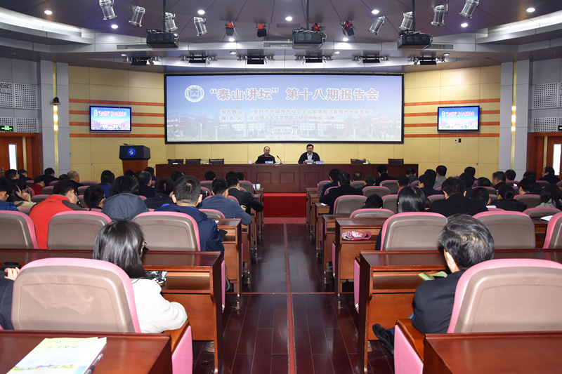 3月20日,学校举办“泰山讲坛”第十八期报告会,特邀北京师范大学思想政治研究院院长冯刚教授来校作“新时代中国特色社会主义思想政治教育的创新发展”专题报告。报告会由校党委副书记尹华主持,副校长高建广出席报告会。