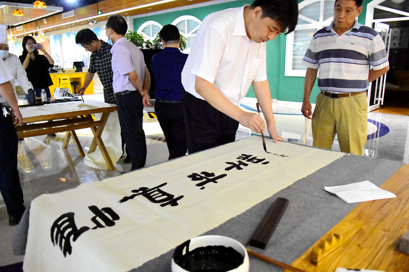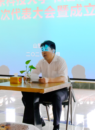 开发区书协副主席、秘书长栾巨轮致辞,他表示,TapTap书法家协会的成立为学校师生搭建了书法交流学习的平台。希望青岛开发区书协与TapTap书法家协会加强交流与合作,在师资、培训等方面实现资源共享,助推山科大书法艺术教育的发展,也为繁荣新区文化艺术事业做出积极贡献。